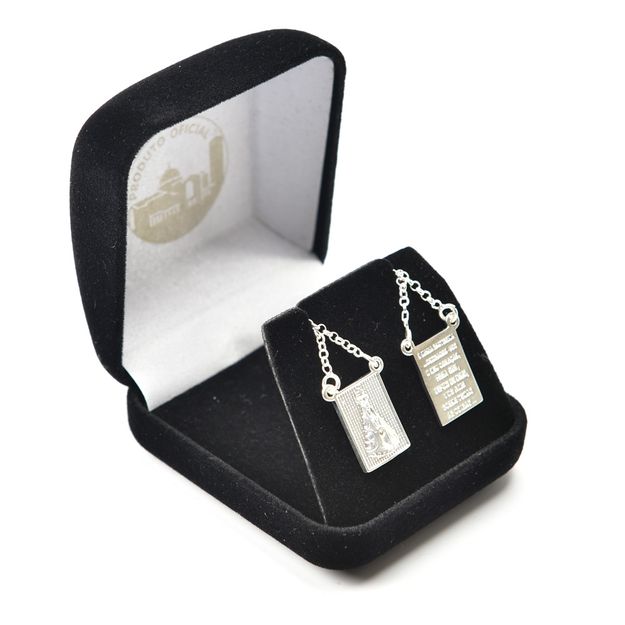 O Escapulário Nossa Senhora Aparecida é uma joia banhada a prata que traz a imagem da Padroeira do Brasil acompanhada do trecho da Consagração: “Ó Maria Santíssima, consagro-vos o meu coração, para que depois de Deus, vos ame sobre todas as coisas.” Com corrente de 60 cm e pingente de 1,5 cm x 1 cm, é uma peça que une fé e delicadeza, ideal para uso diário ou para presentear.