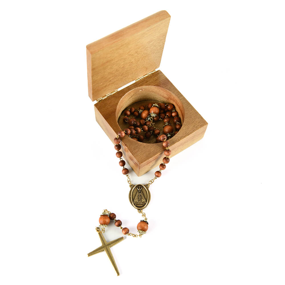 A Loja Oficial do Santuário Nacional de Aparecida apresenta com exclusividade o Terço de Aparecida, uma peça devocional que une fé, beleza e compromisso com a sustentabilidade. Produzido em madeira certificada, este terço acompanha um porta-terço igualmente refinado, com acabamento em couro e imagem de Nossa Senhora Aparecida estampada na tampa por técnica de silk screen.